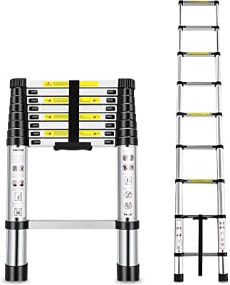 This extendable ladder is crafted from superior aluminum alloy. They has been tested many times to ensure a long service life. Great partner for both commercial and home use, such as window washing, painting, repairing roof, exterior/interior decorating, pruning plants, etc. The telescopic ladders have a maximum load of 330lb/150kg.